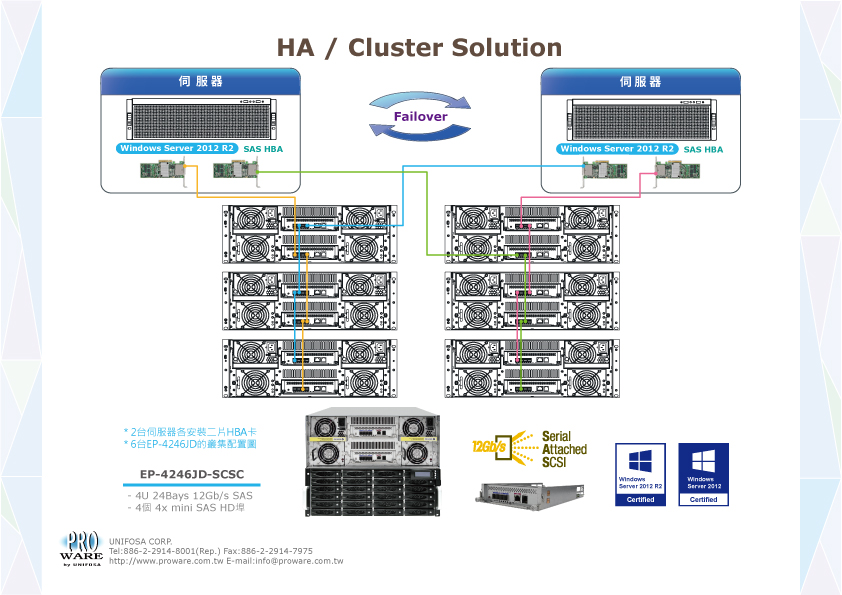 | JBOD控制器 | 單控制器(EP-4246J-SCSC) / 雙控制器(EP-4246JD-SCSC) |